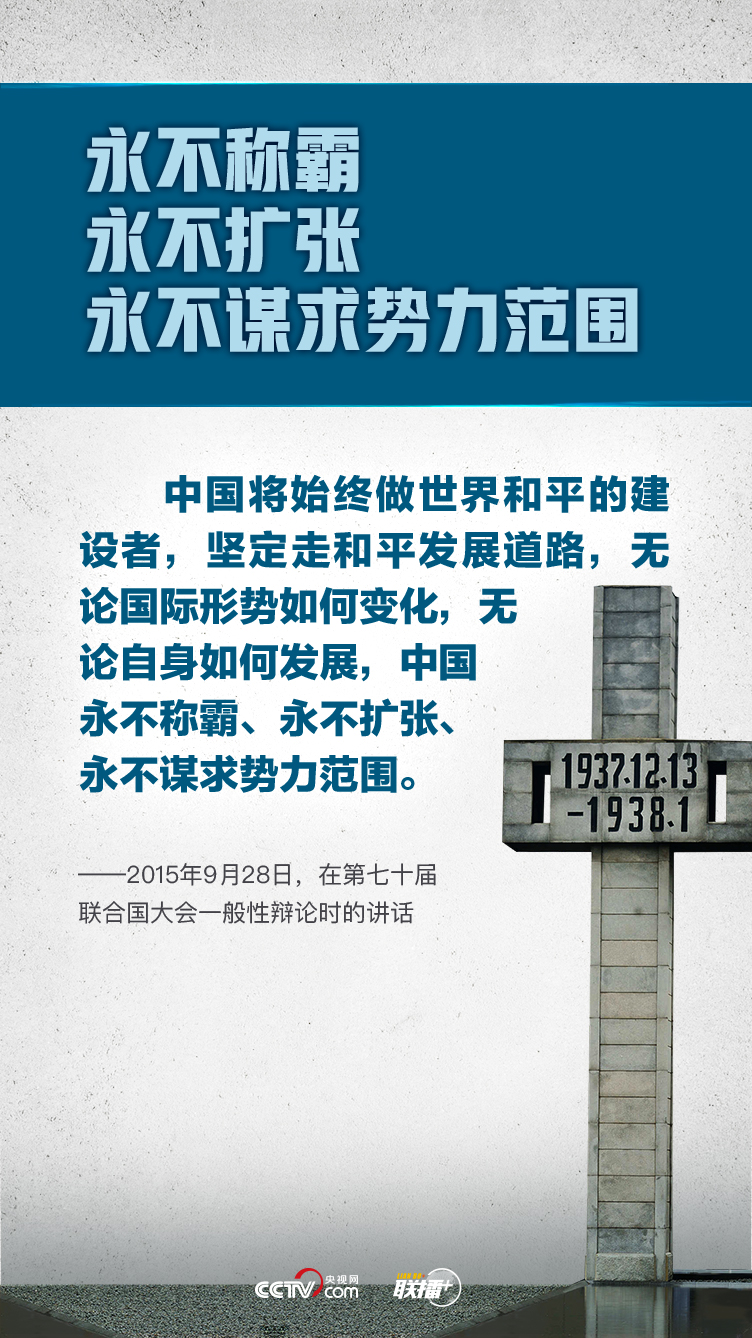 习近平总书记曾指出:“我们为南京大屠杀死难者举行公祭仪式,是要唤起每一个善良的人们对和平的向往和坚守,而不是要延续仇恨。”党的十八大以来,总书记多次发表关于珍爱和平的重要论述。央视网《联播+》特梳理,与您一起以尊崇之心珍视和平,以民族之力矢志复兴。
